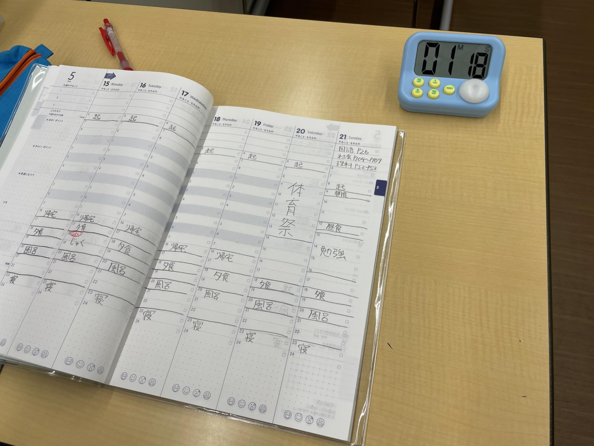 このサイクルを毎週繰り返すことで、子どもたちは自然と学習の進め方を自分で考える力を身につけ、テスト勉強の計画を立てられるようになります。また、時間の使い方に対する意識が高まり、自らの行動を客観的に見つめ直す“メタ認知力”が養われていきます。スケジュール帳は単なる予定表ではなく、「自分の学びをマネジメントする力」を育てる重要なツールです。