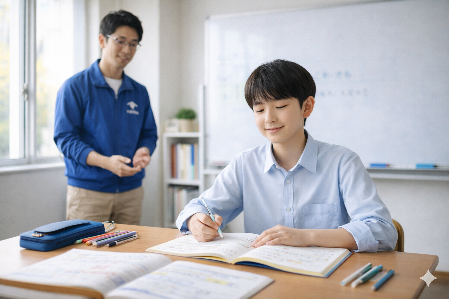 最初の定期テストで自信をつけ、「正しく勉強ができる中学生」へ変身します。
