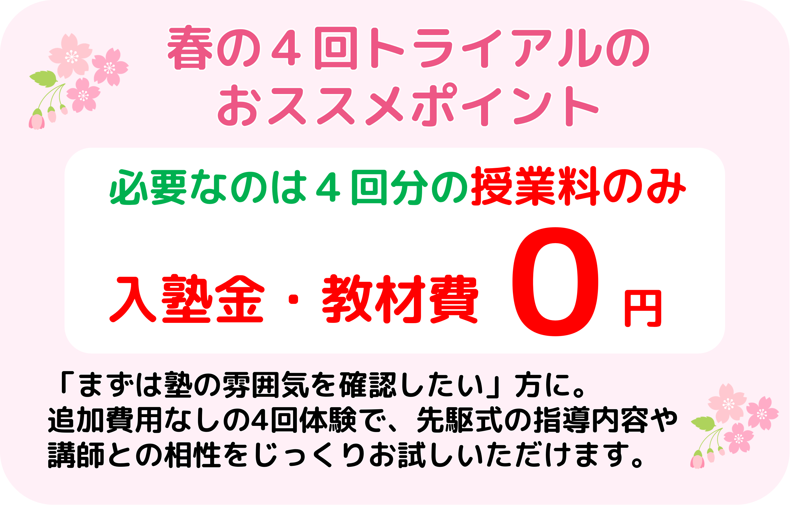 ※4回トライアル受講後、2026年4月末までにご入塾された方限定。