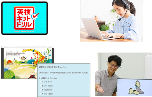 英検Jr.や英検を基準に、一人一人のレベルに合わせた様々な学習を行うことで、「話す(やりとり,発表)・聞く・読む・書く」の4技能5領域をバランスよく身につけることを目指します。